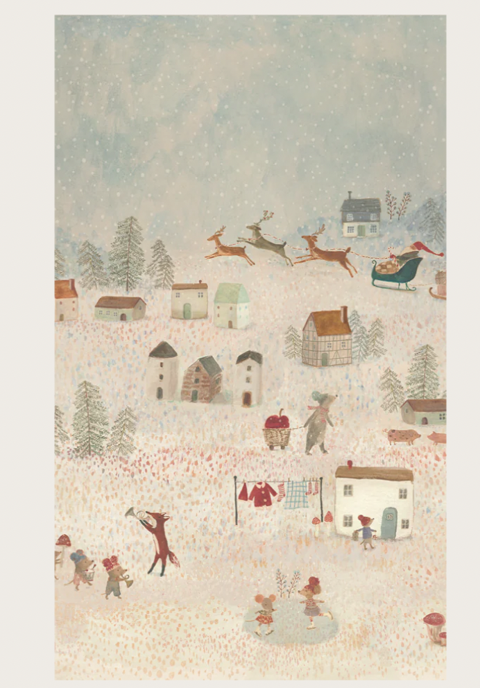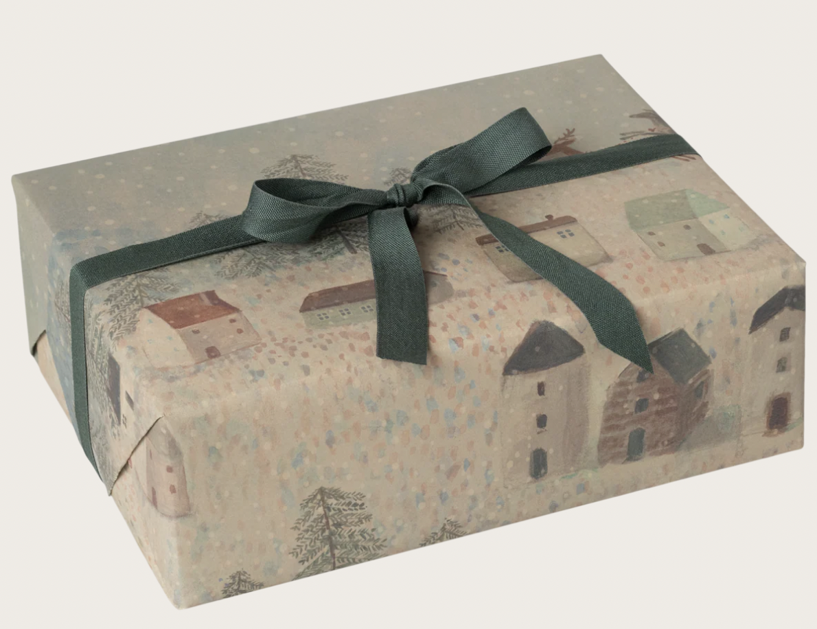 The decoration on this giftwrap started with Dorthe Mailil's hand painted drawings. After a graphical process the giftwrap got a beautiful expression and the atmosphere of Christmas is complete. Add a beautiful soft ribbon as final touch.