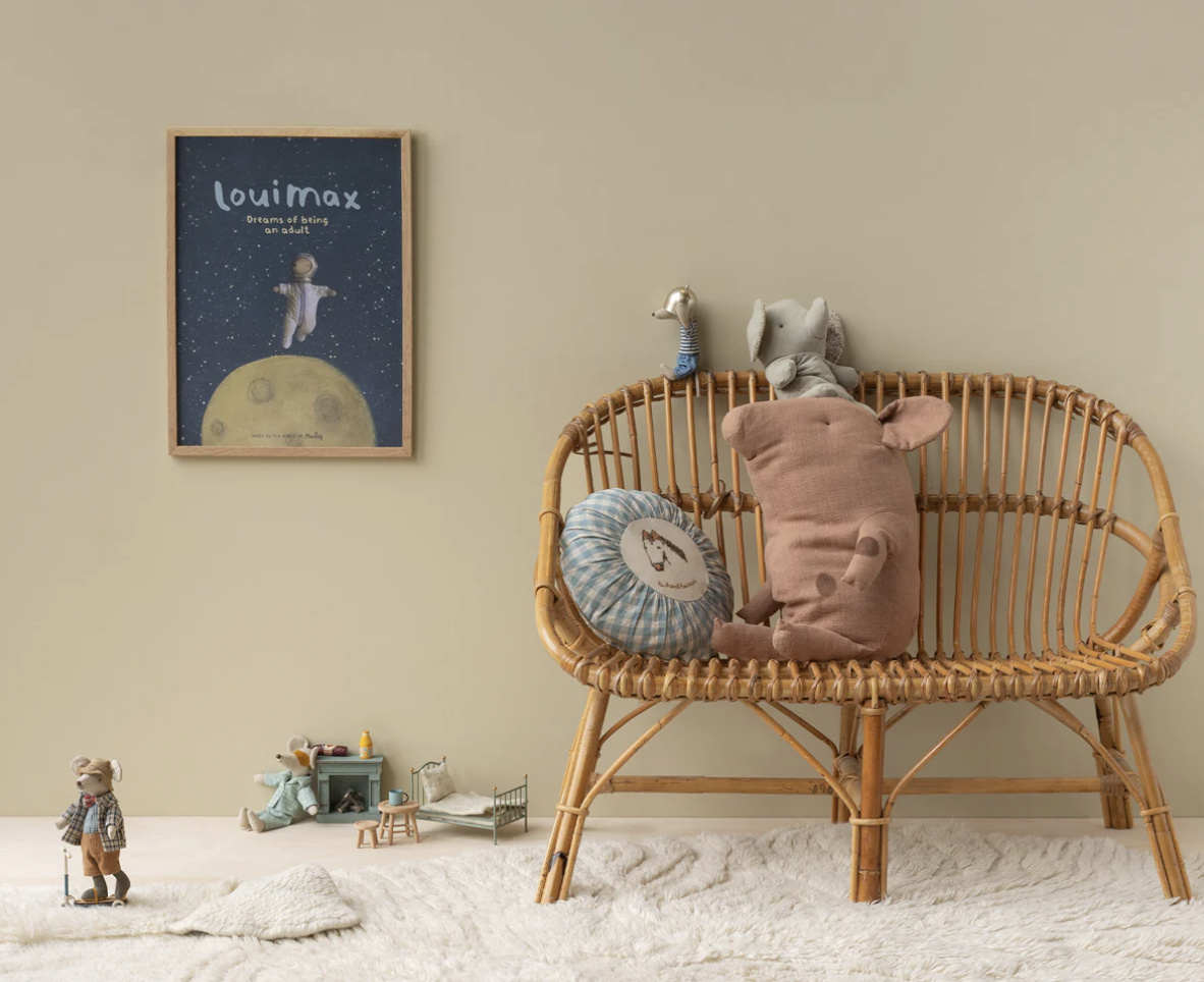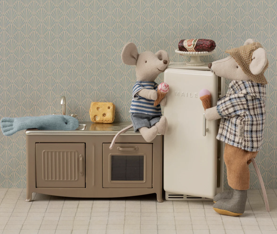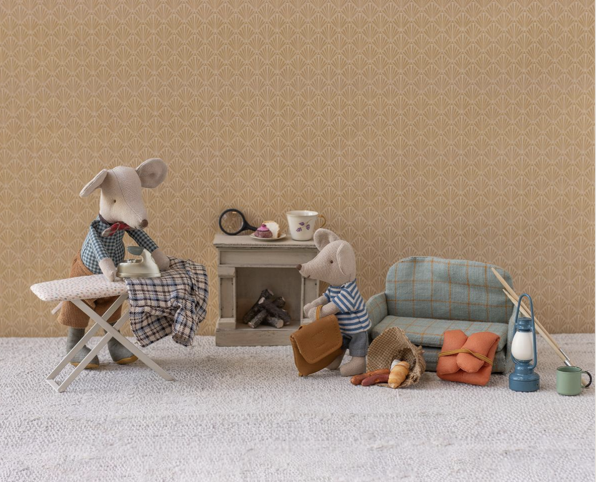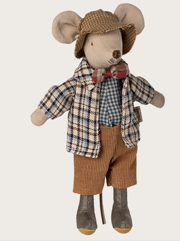 The granddad looks both wise and nice - he wears rubberboots, butterfly, pants and jacket and is always ready to cheer you up with all his many stories. The mouse has magnets in its hands.