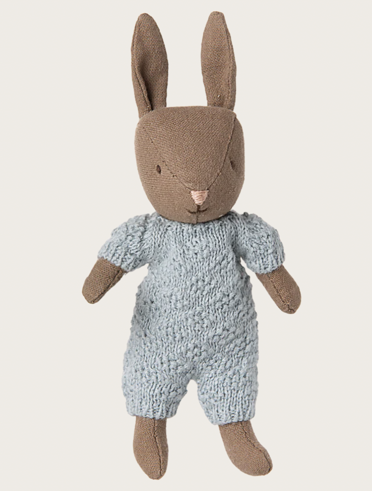 Let the storytelling and hours of play begin with this soft rabbit. It fits Maileg accessories in size micro perfectly and can live in the House of miniature dollhouse. This rabbit has magnets in hands.