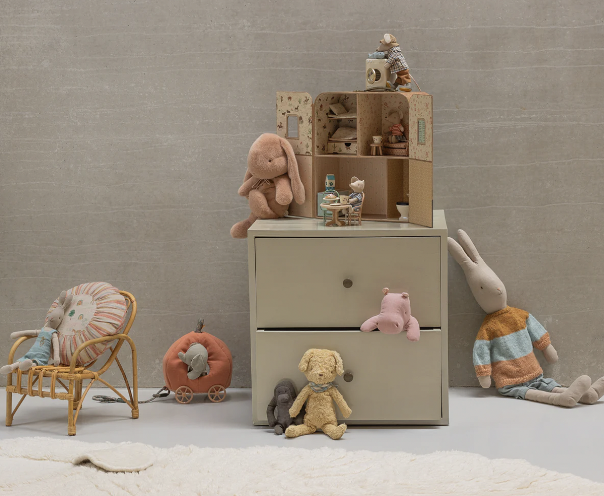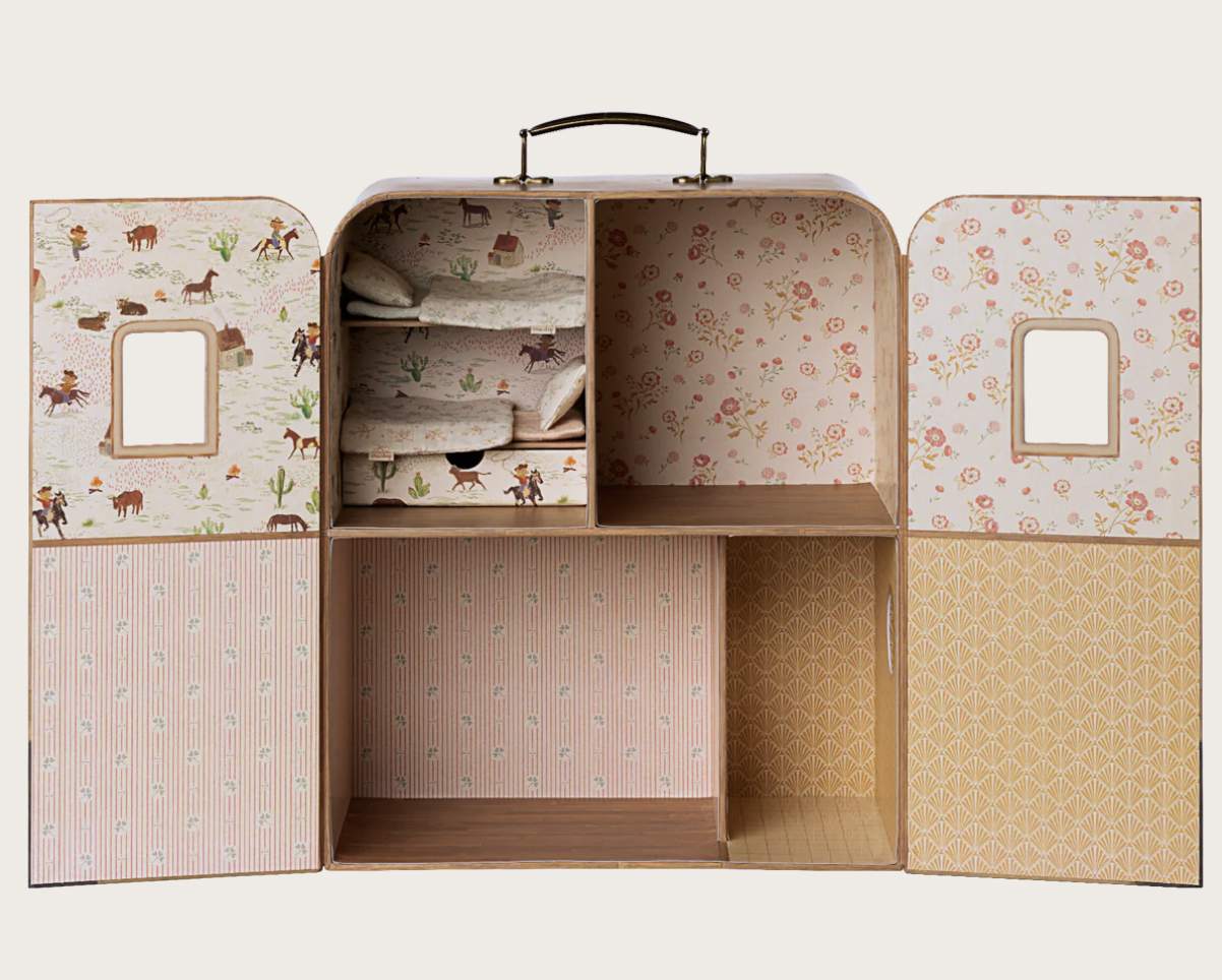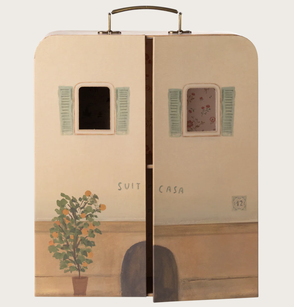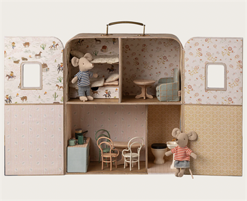 Welcome to SuitCasa - a small portable house. It fits the size: Littlebrother and sister mice. 2 sets of soft bedding for your friends are included but you can buy several of other small furnitures to decorate the house.