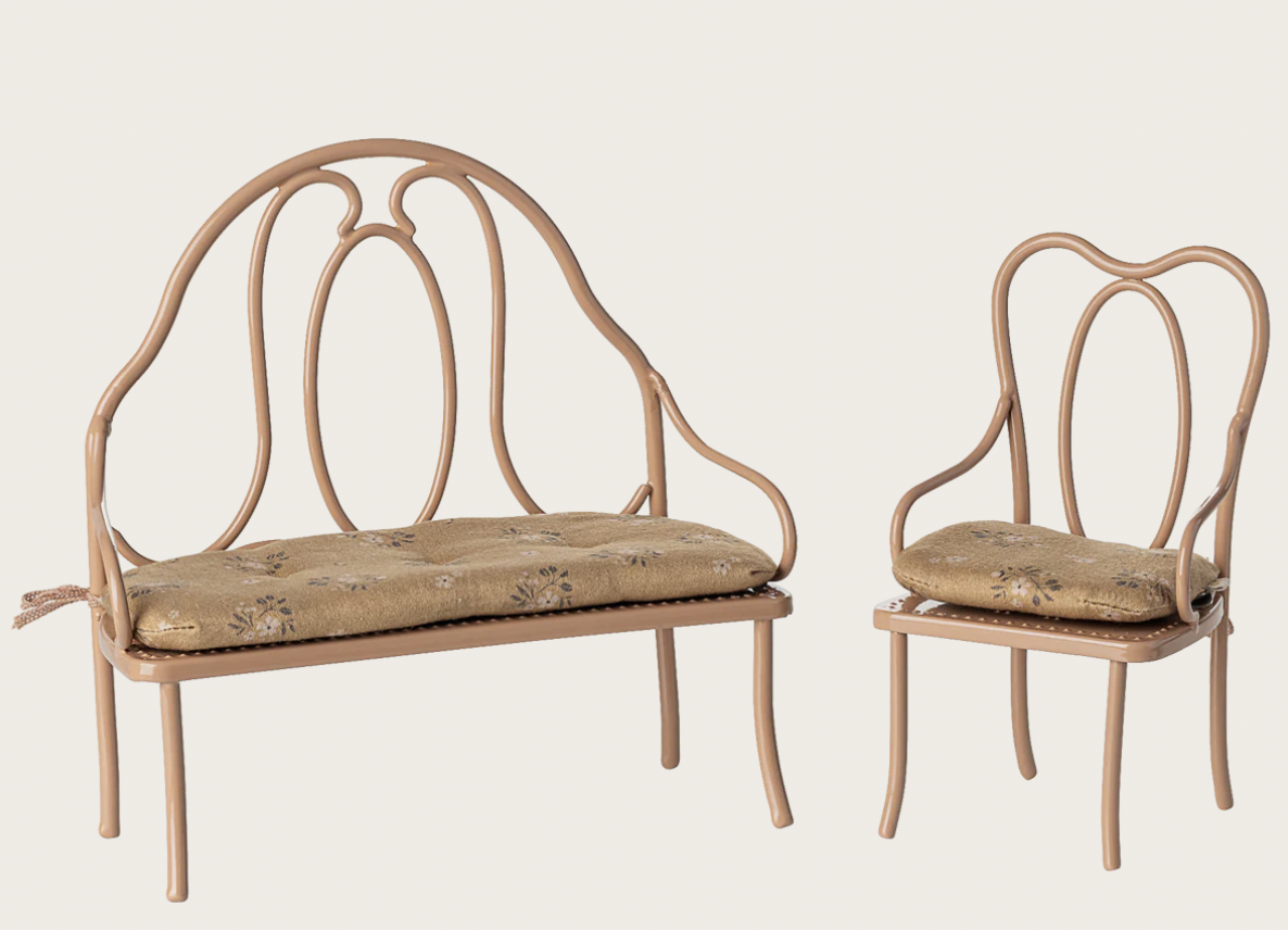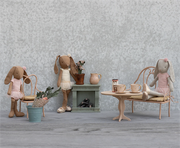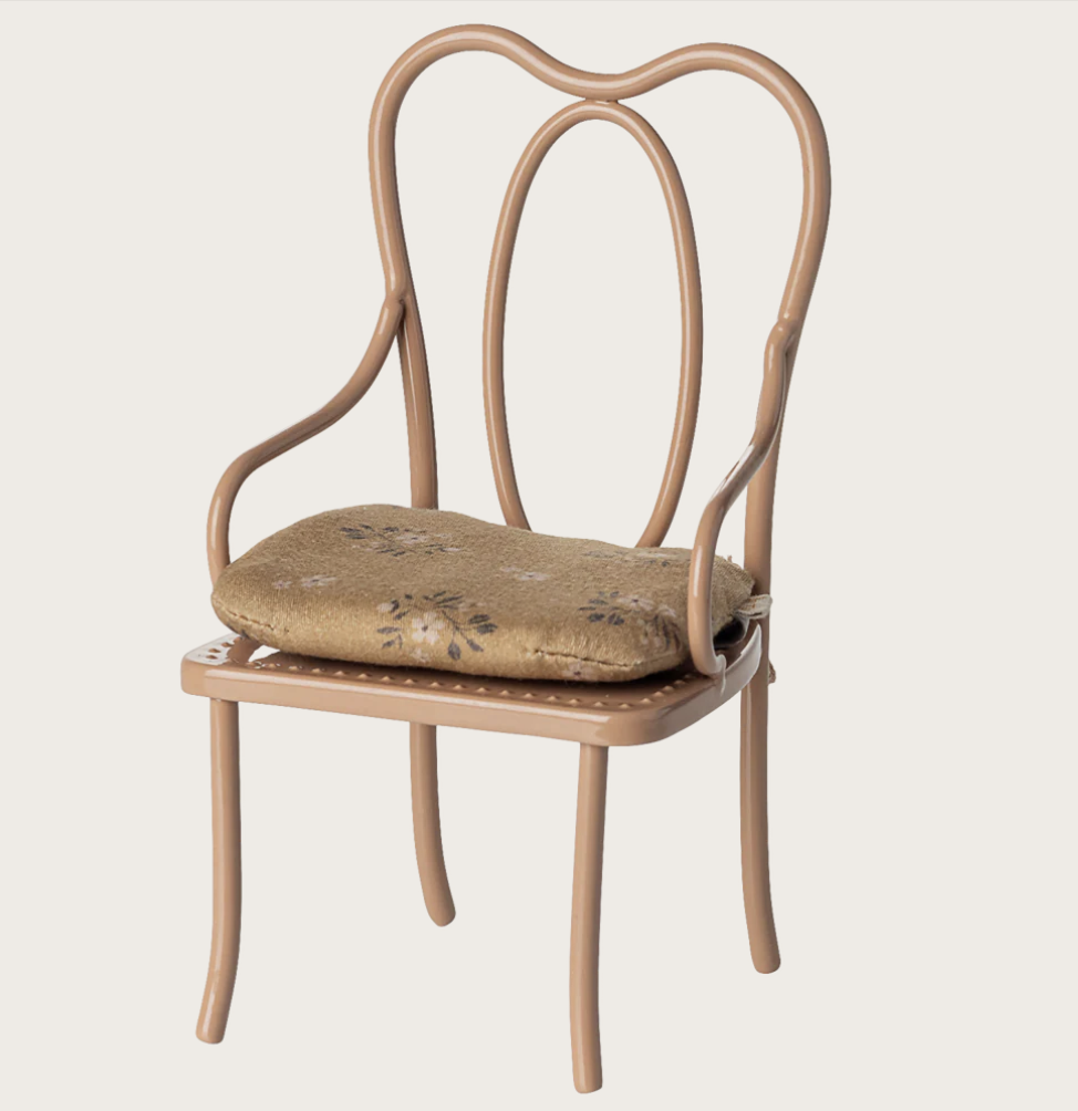The beautiful vintage chair comes with a soft cushion to secure a comfortable seat. The chair is perfect for a short rest and fits perfectly for the bunny and rabbit size 1 and 2.